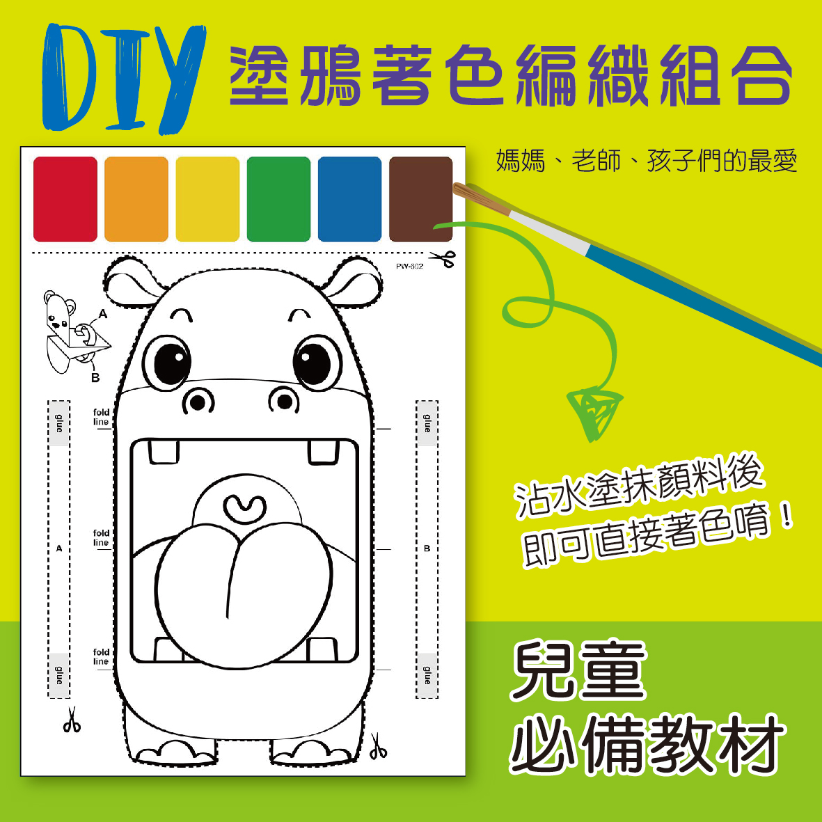 塗鴉著色手偶畫-可愛河馬