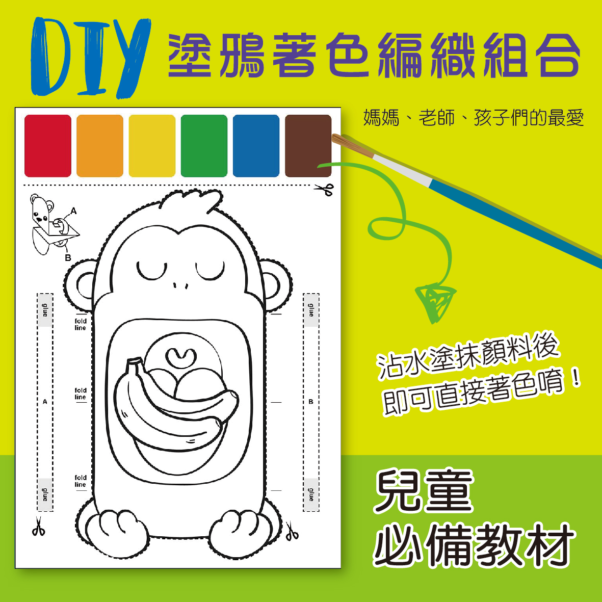 塗鴉著色手偶畫-愛吃香蕉猴子